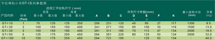 艾培爾GT-1型安全型手拉單軌小車參數: