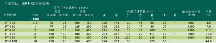 艾培爾PT-1型安全型手推單軌小車結構圖: