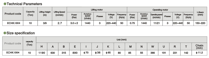 艾培爾ECHK電動葫蘆20T參數: