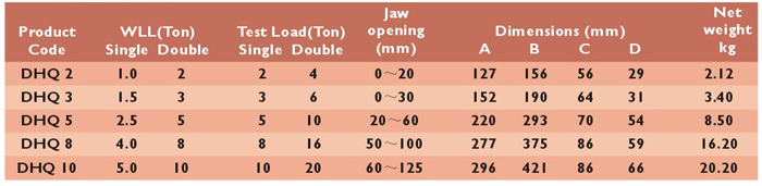艾培爾DHQ鋼板起重鉗參數(shù):