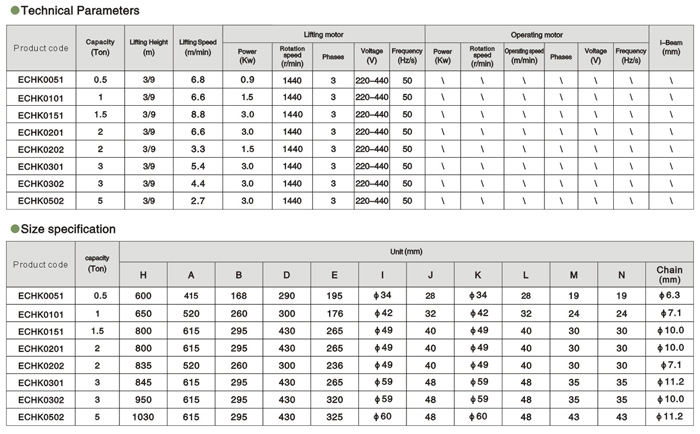 艾培爾ECHK固定式電動葫蘆有結構緊湊、自重輕、體積小、操作方便、易于維護等特點。電動葫蘆既可以單獨安裝在架空工字梁上,也可以配套安裝在電動或手動單梁、雙梁、懸臂、龍門等起重機上。