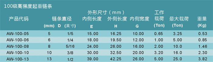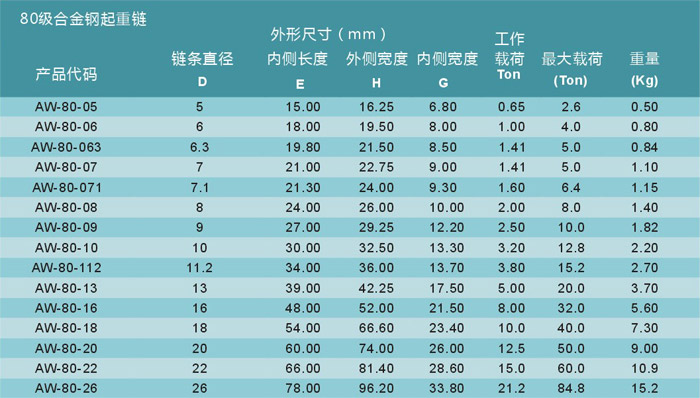 艾培爾AW-8型80級高強度起重鏈產品特點: