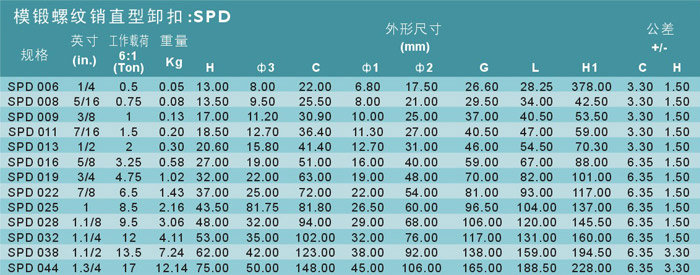 艾培爾SPD型6倍強力型卸扣結構圖: