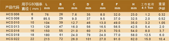 艾培爾G80美式羊角寬嘴鉤HCS型參數(shù):