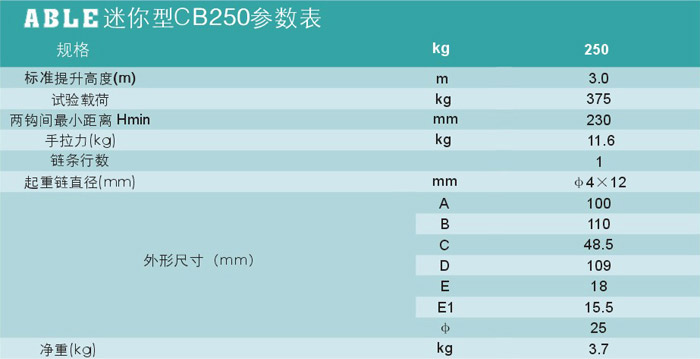 CB250型迷你手拉葫蘆產(chǎn)品特點: