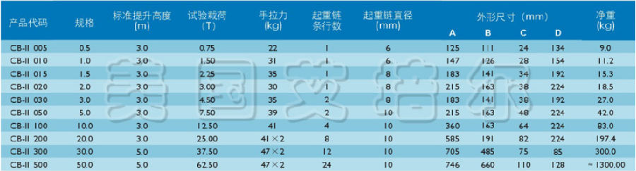 艾培爾CB-II型德國款式環鏈手拉葫蘆參數: